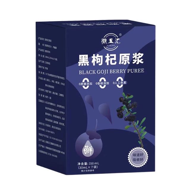 【徽五汇】正宗青海黑枸杞原浆100%鲜榨30ml*7袋/盒不加一滴水4盒