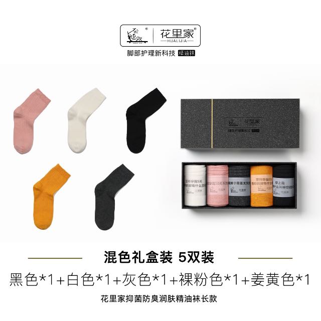 花里家7A抗菌防臭精油袜(35-45码可穿)四季润肤棉袜5双精品礼盒装