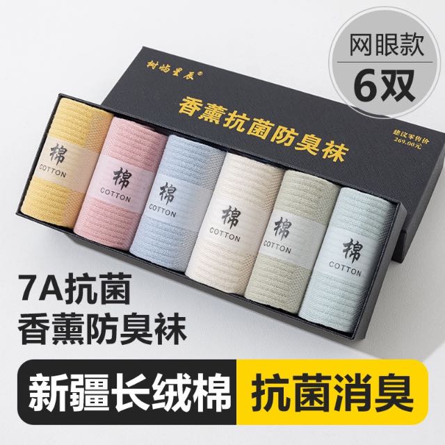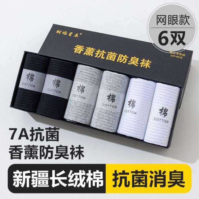 7A精油香薰抗菌防臭袜新疆棉男款37-43码中筒6双盒装