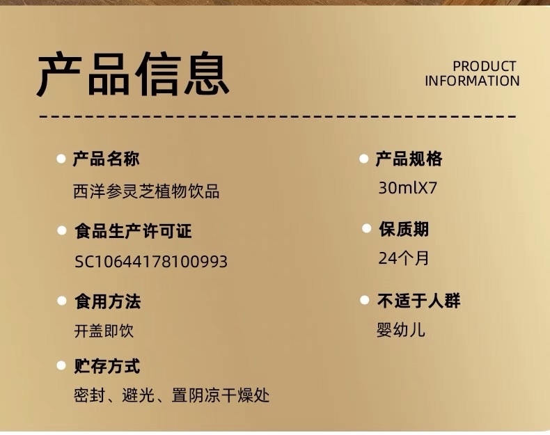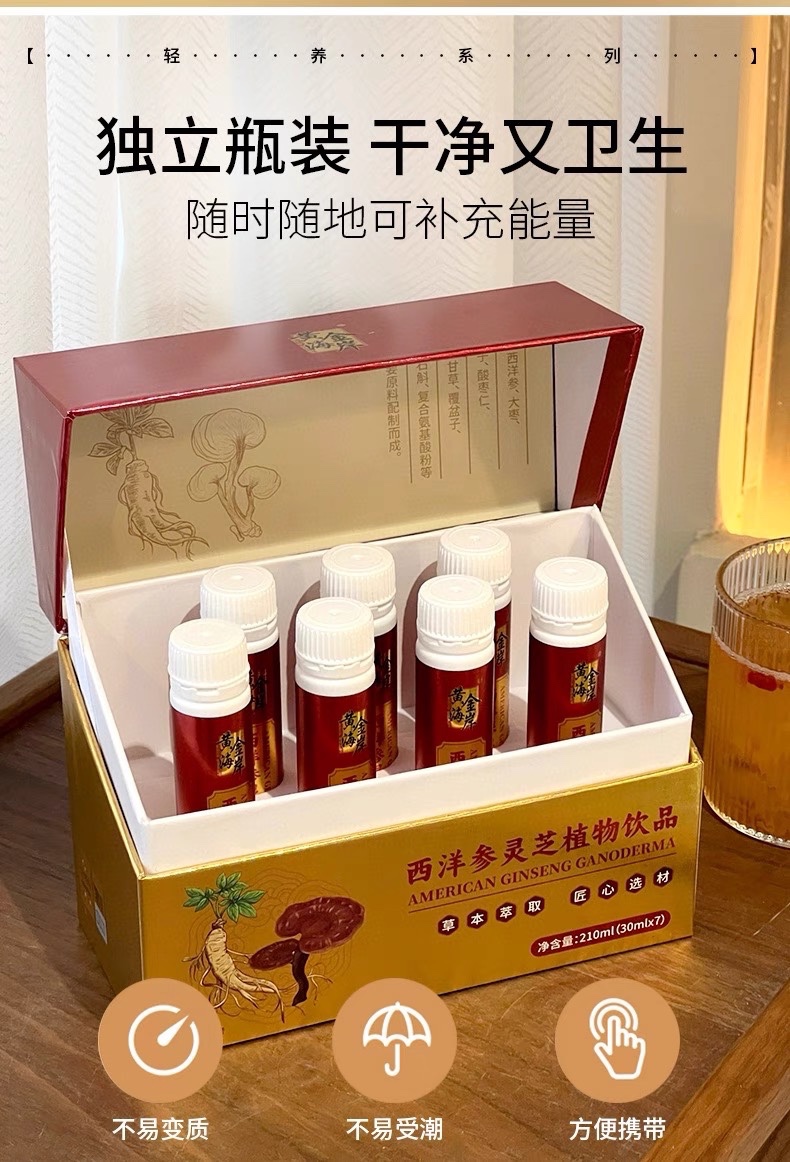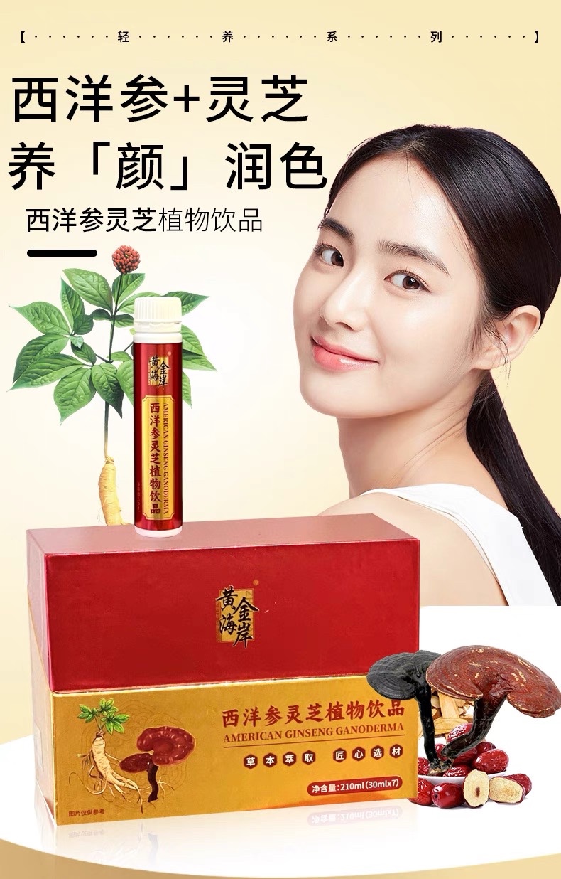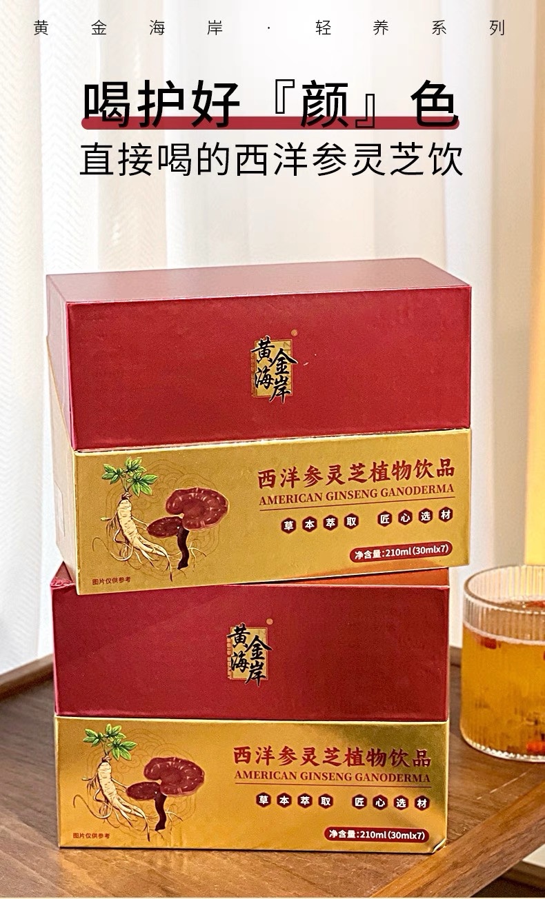 黄金海岸西洋参灵芝植物饮品女性养颜口服液3盒