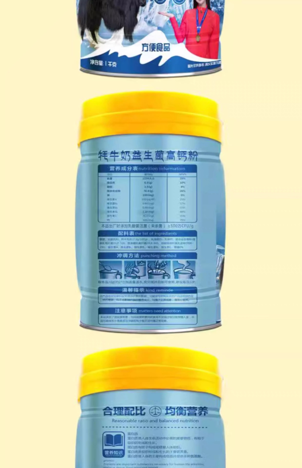 重要申明:此产品是添加了大量纯奶粉的高钙粉, 属于一种方便食品, 不属于纯奶粉, 因此不能按照纯奶粉的执行标准。 具体配料请看包装背面的配料表。