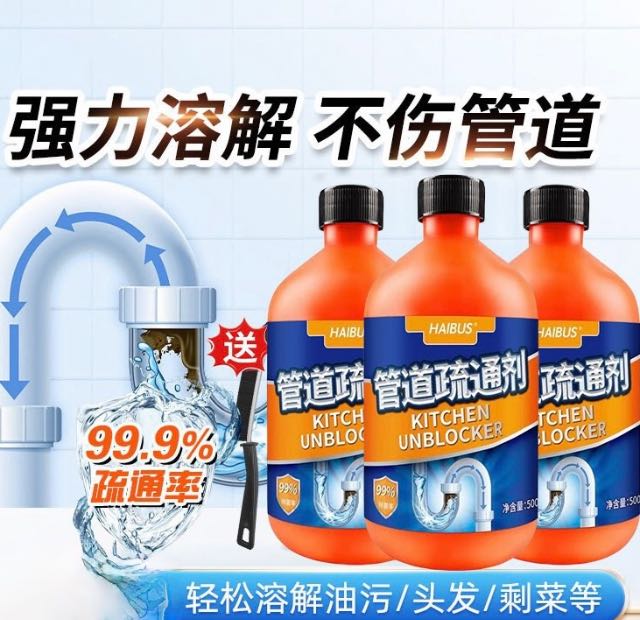 管道疏通剂强力溶解下水道油污马桶厕所堵塞疏通液神器3瓶