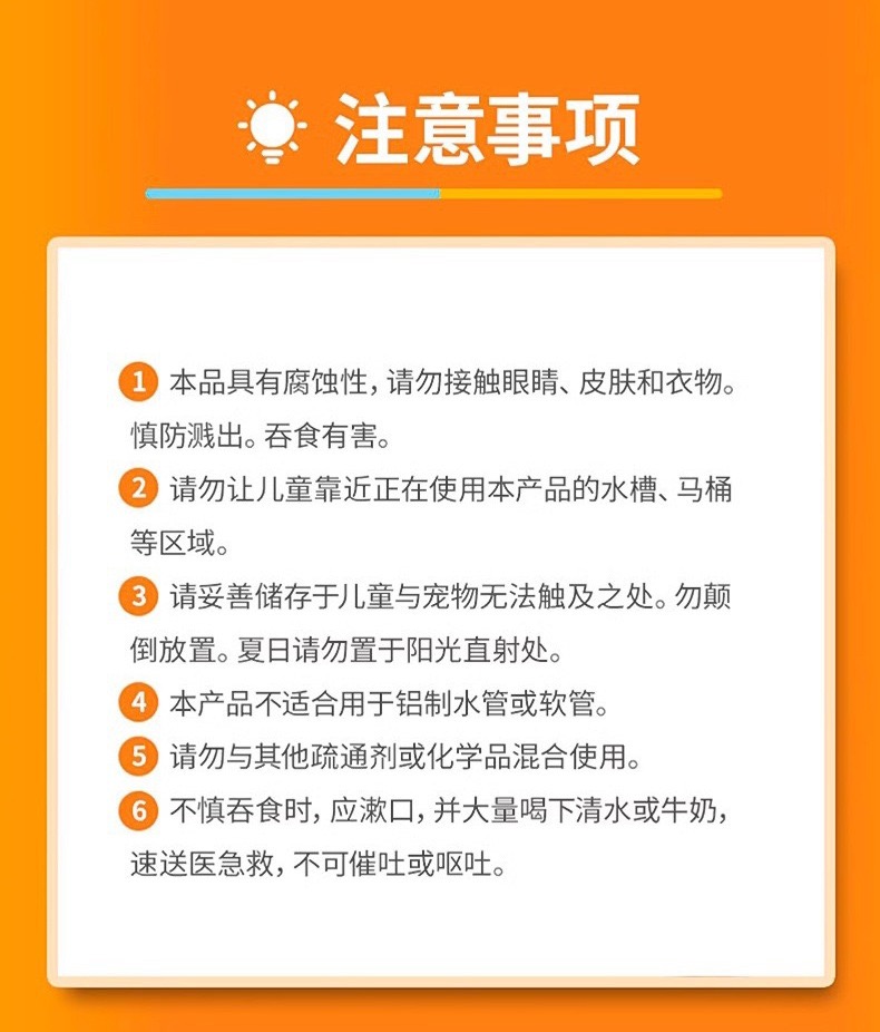 再三强调:此疏通剂不可用于有铝管或软管的地方!