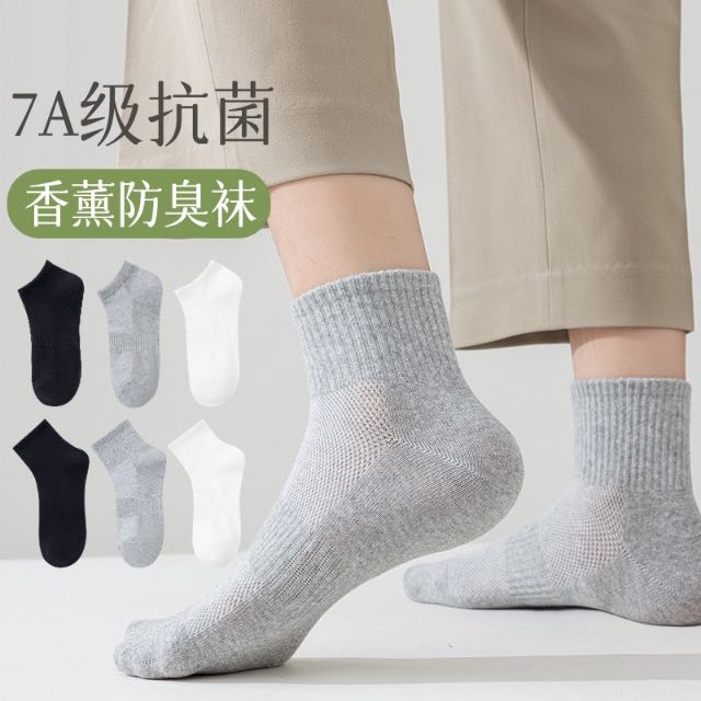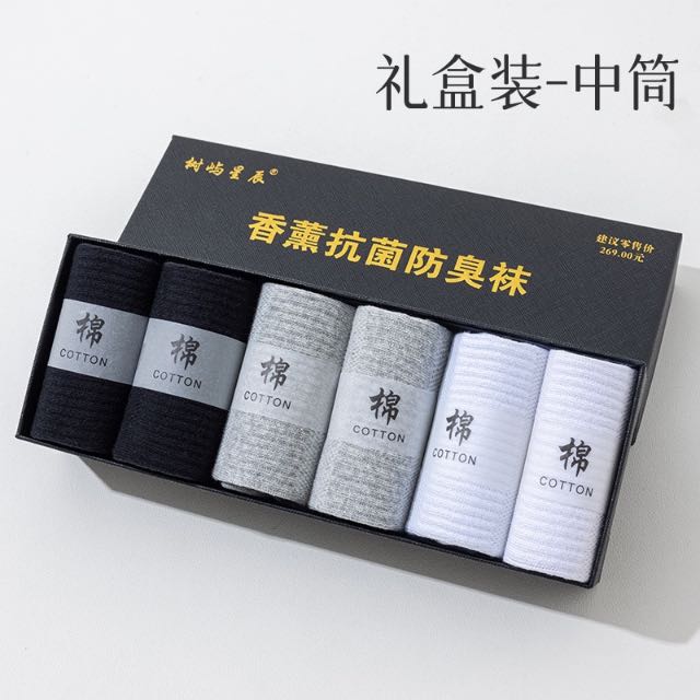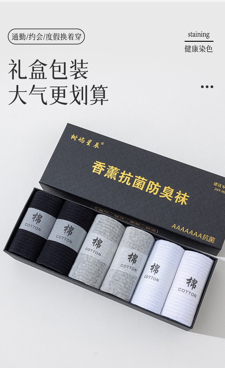 7A精油香薰抗菌防臭袜新疆棉男款37-43码中筒6双盒装