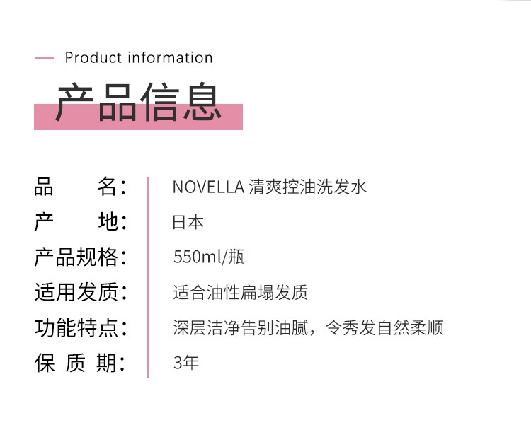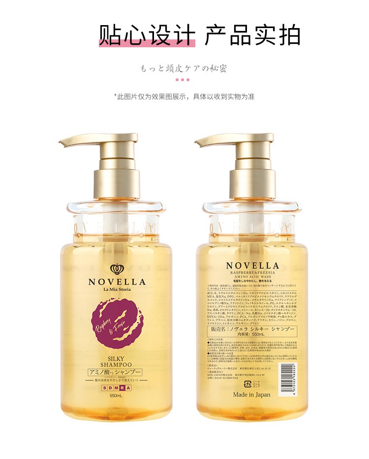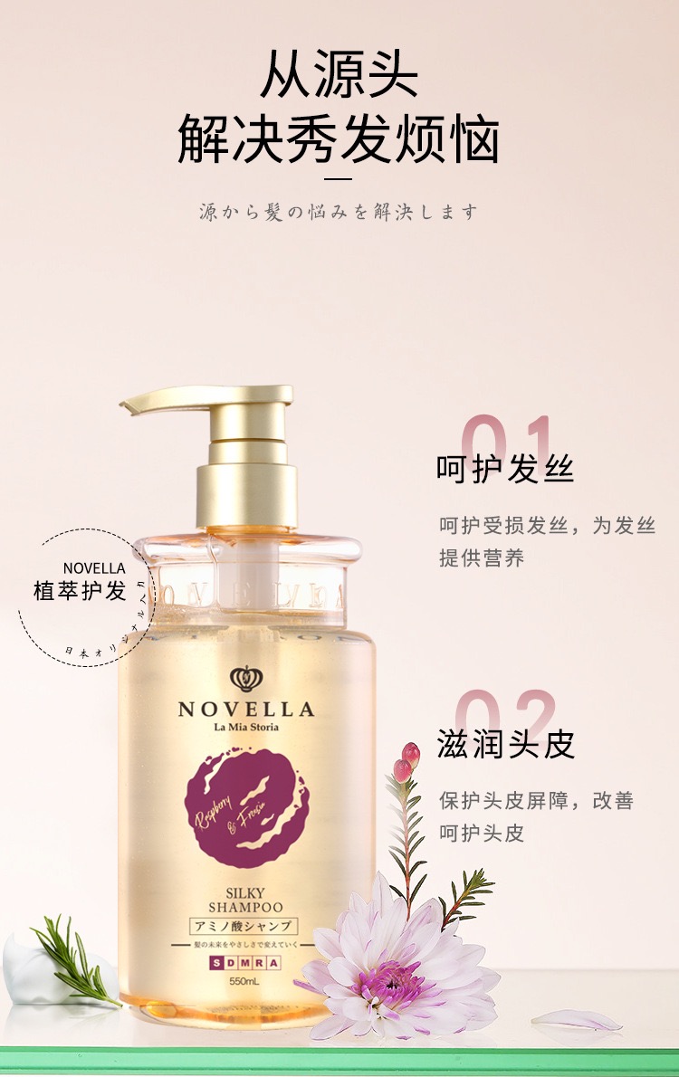 日本原装进口novella那绯澜洗发水氨基酸清爽控油树莓小苍兰香氛550ml*2瓶
