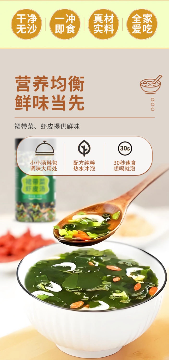 霞浦出口品质30秒速食裙带菜虾皮汤料包50包