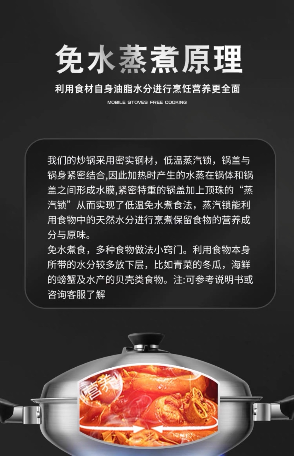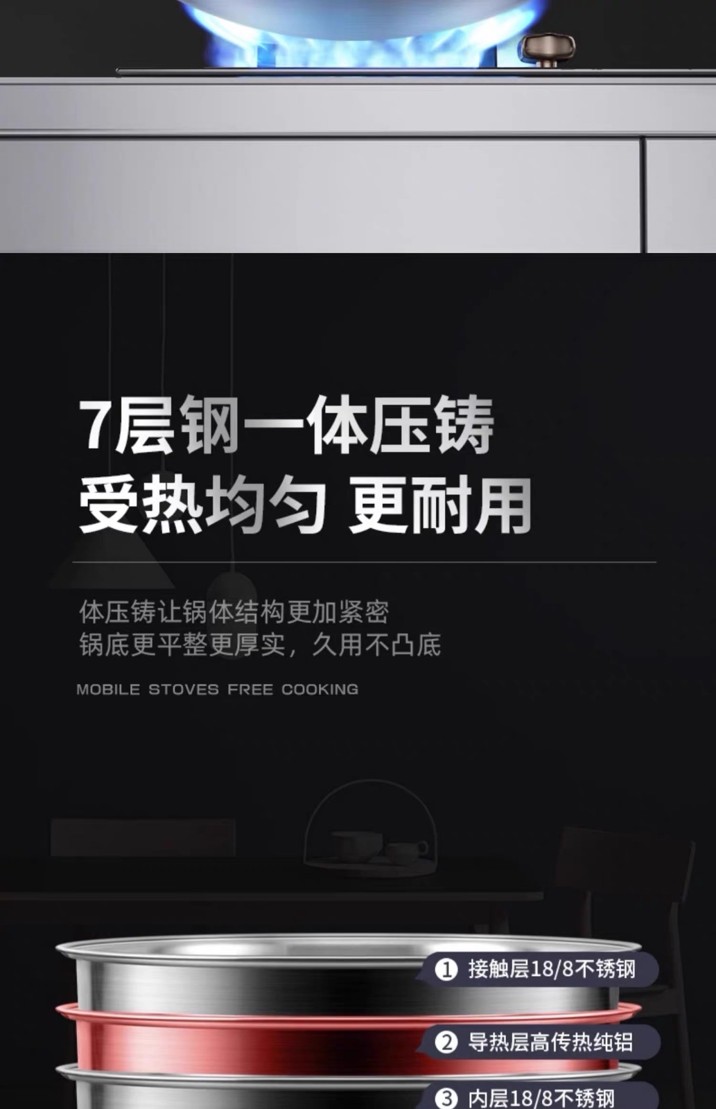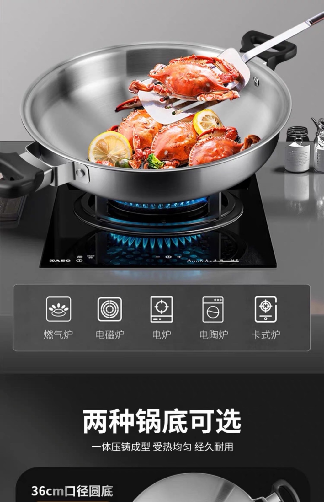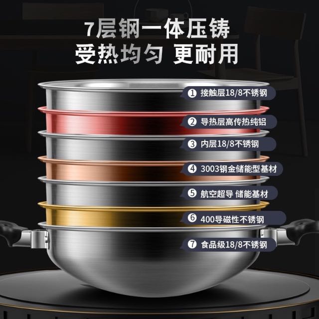 铿锵安利皇后锅304不锈钢炒锅中式家用无水火锅36CM平底七层锅