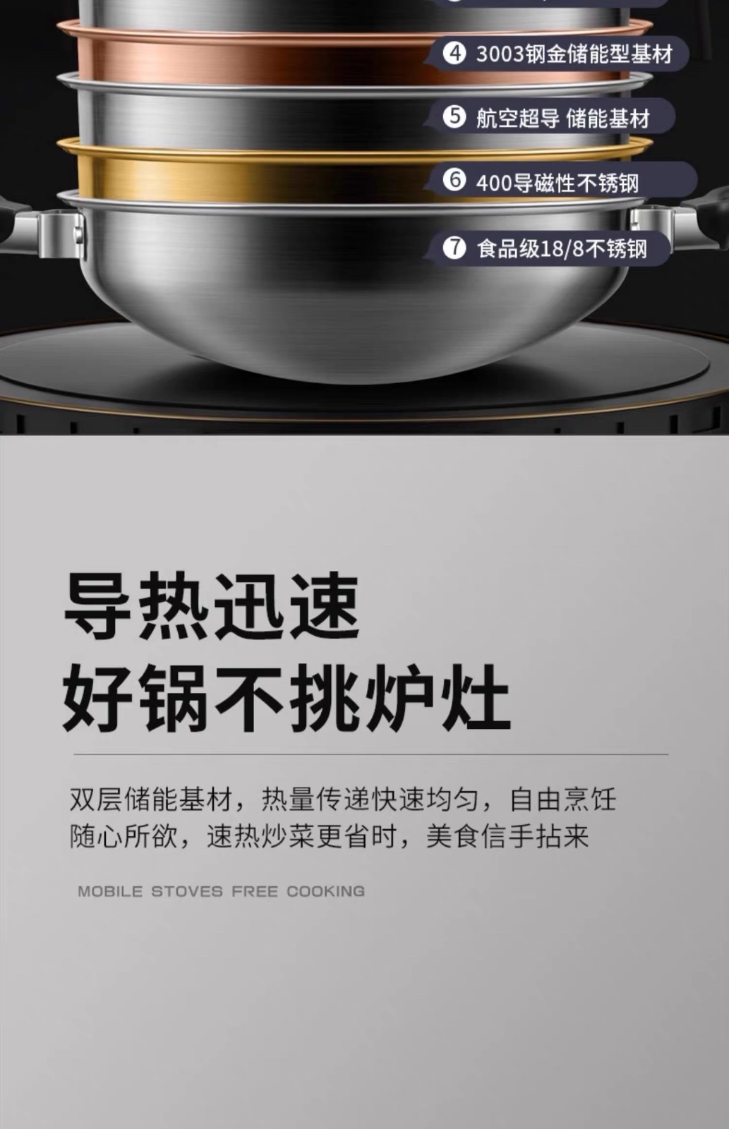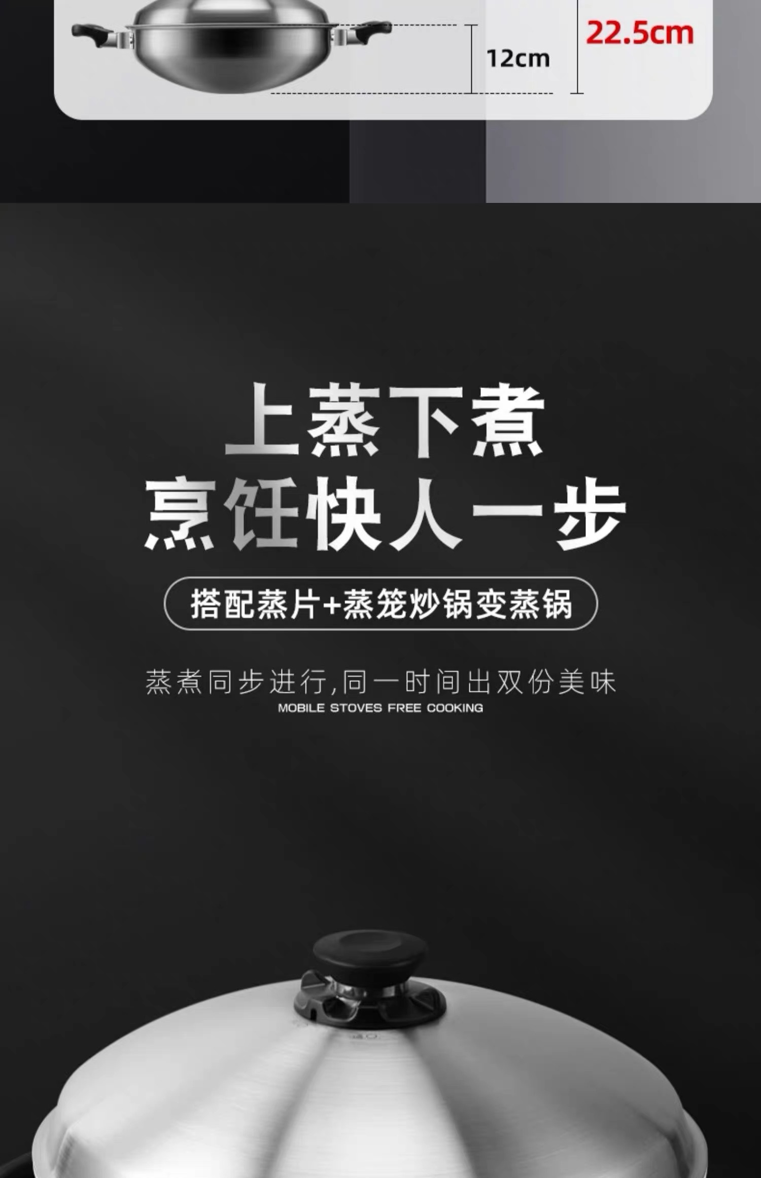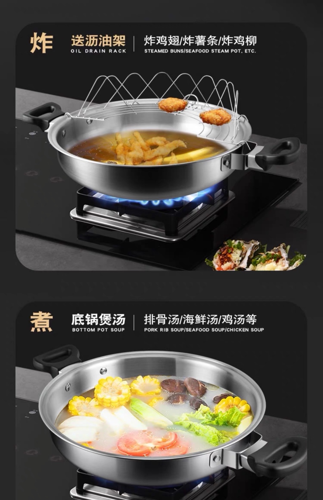 铿锵安利皇后锅304不锈钢炒锅中式家用无水火锅36CM平底七层锅