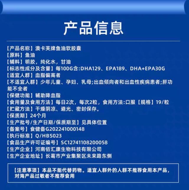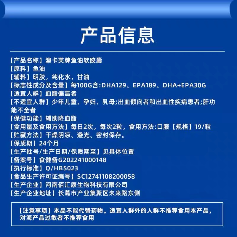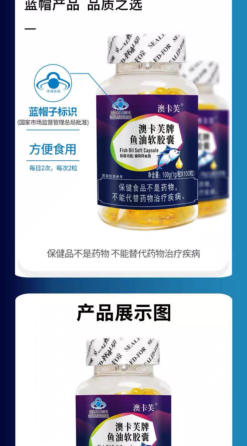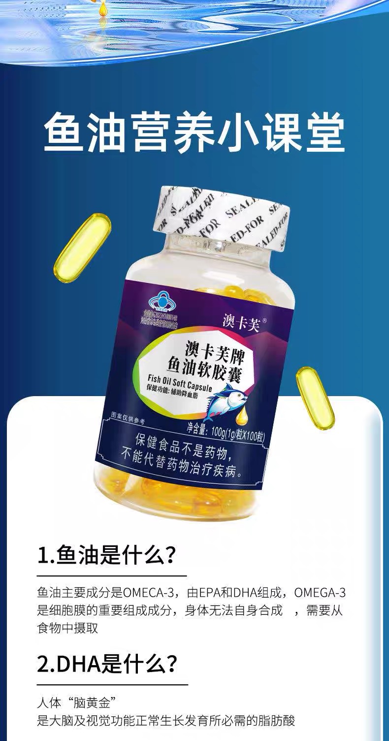 澳卡芙深海鱼油软胶囊中老年辅助降血脂【60粒】1瓶