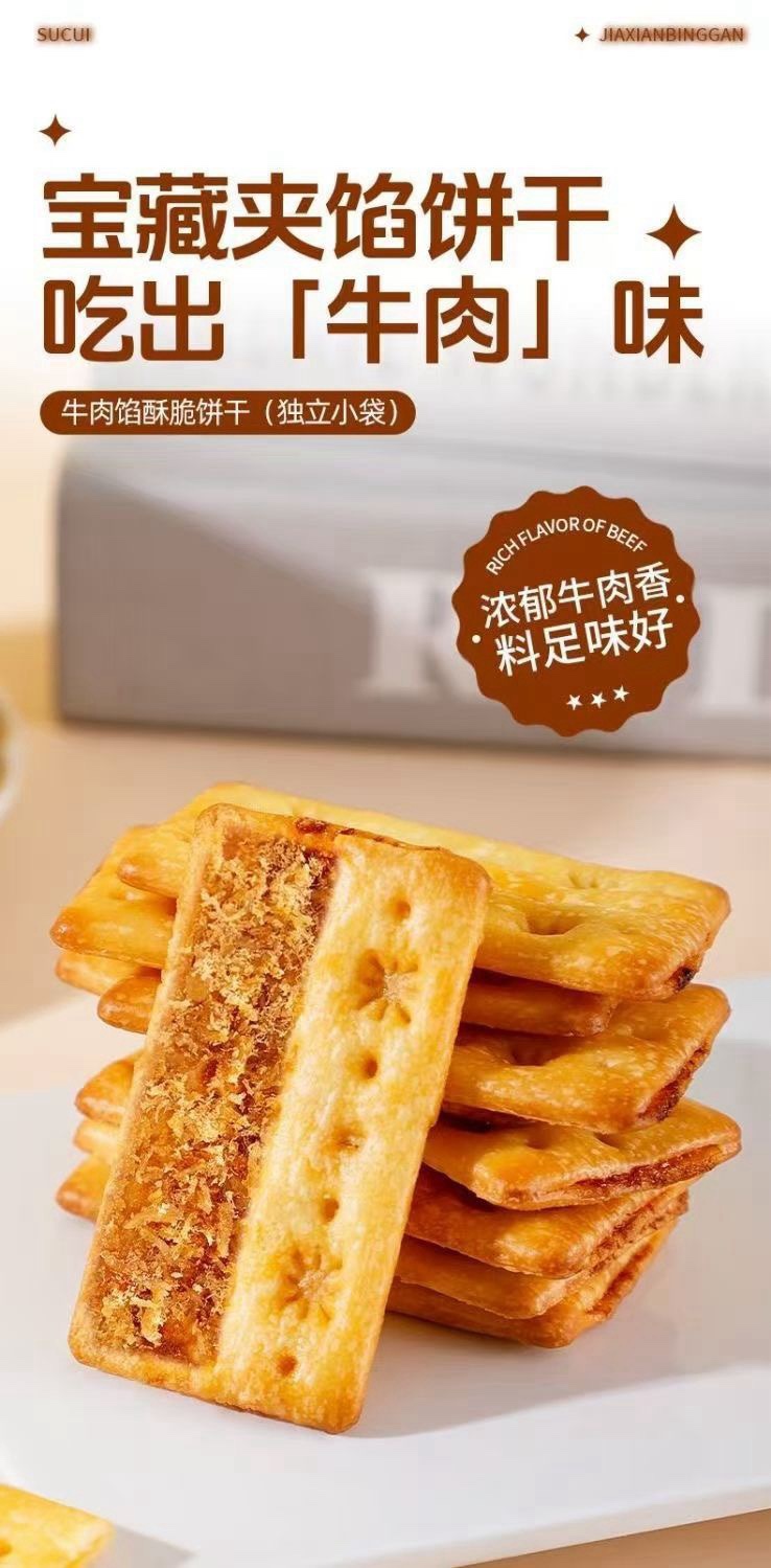 永得利牛肉陷双层饼干咸香酥脆层层薄脆独立包装礼盒装230g*3盒