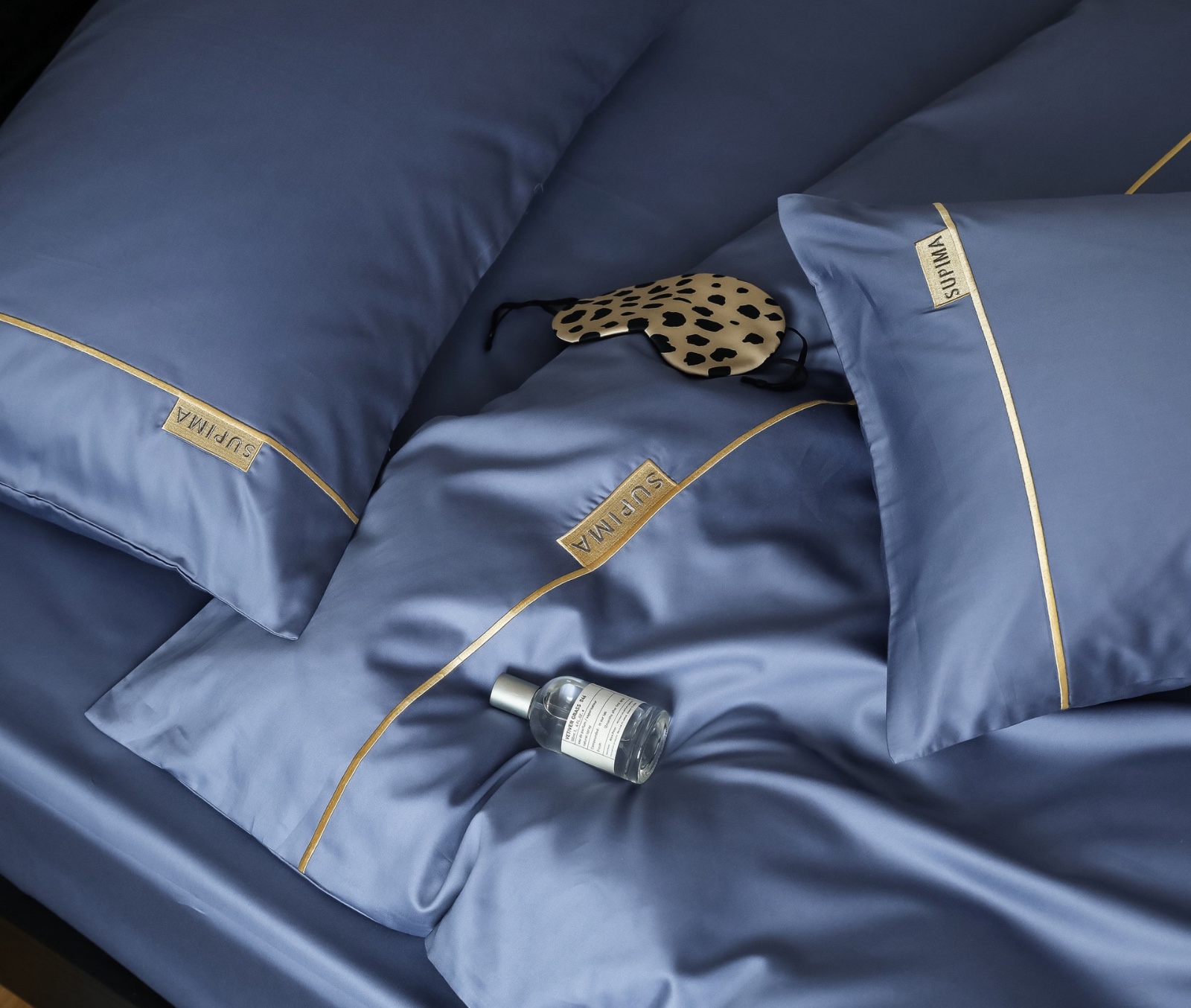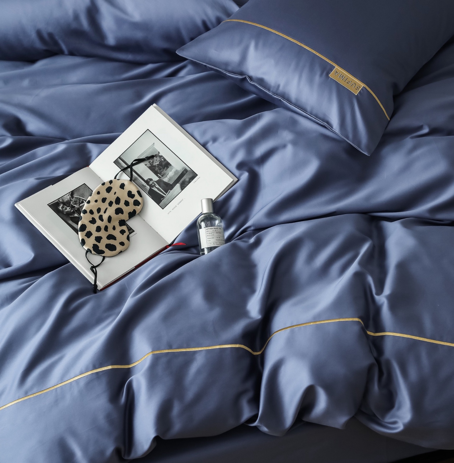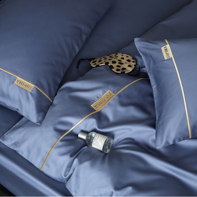 140支美国匹马棉绣花四件套适用1.8米床单款(海茵蓝)