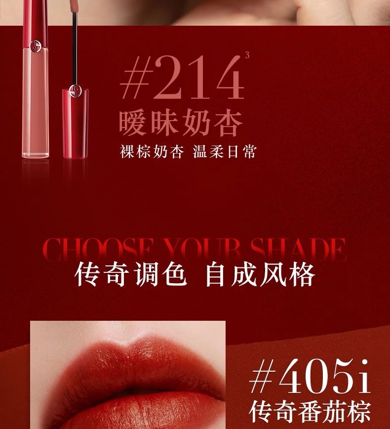 阿玛尼红管唇釉405烂番茄色丝绒哑光显白