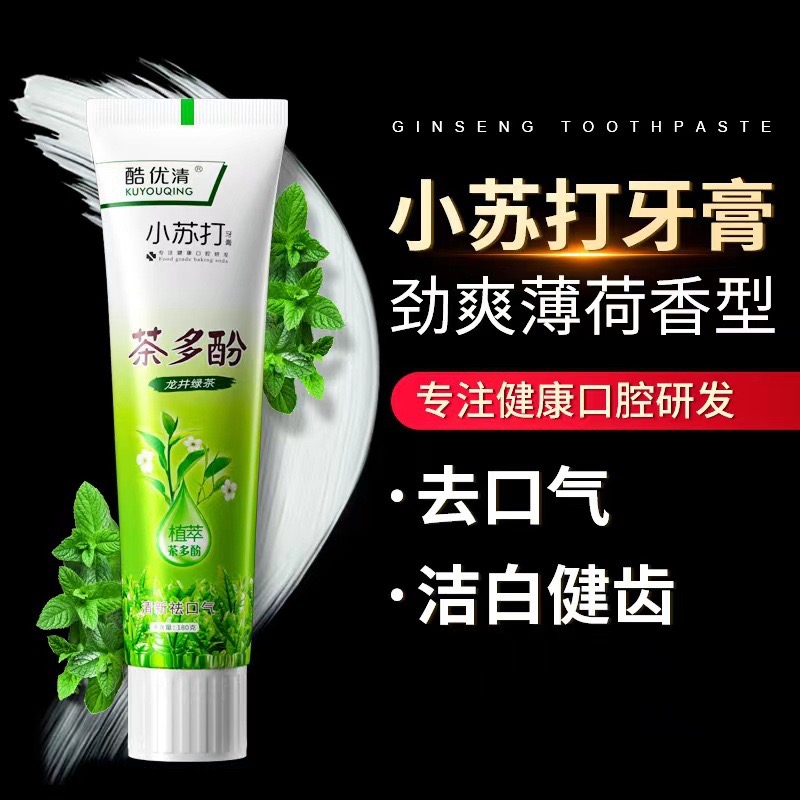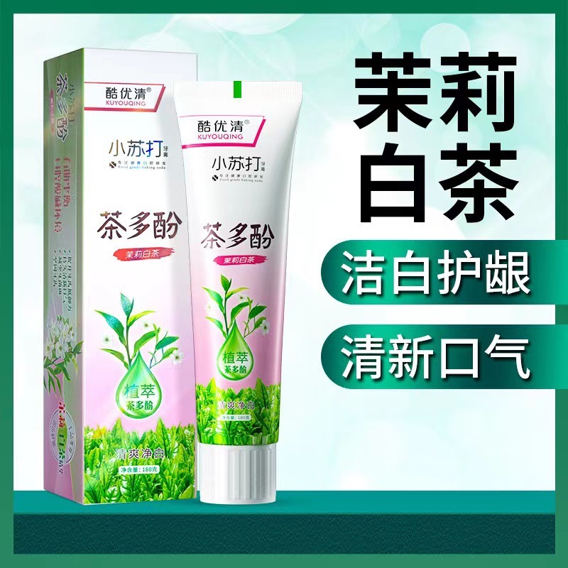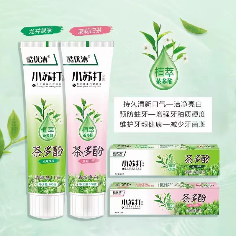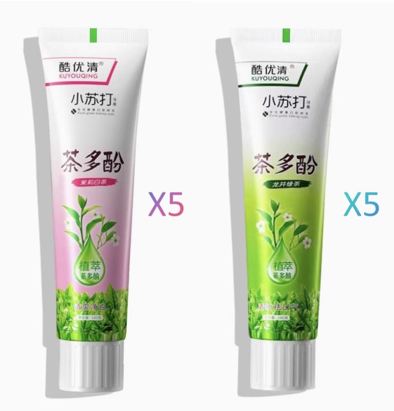 酷优清茶多酚小苏打牙膏茉莉白茶味180g龙井绿茶味180g各5支共10支