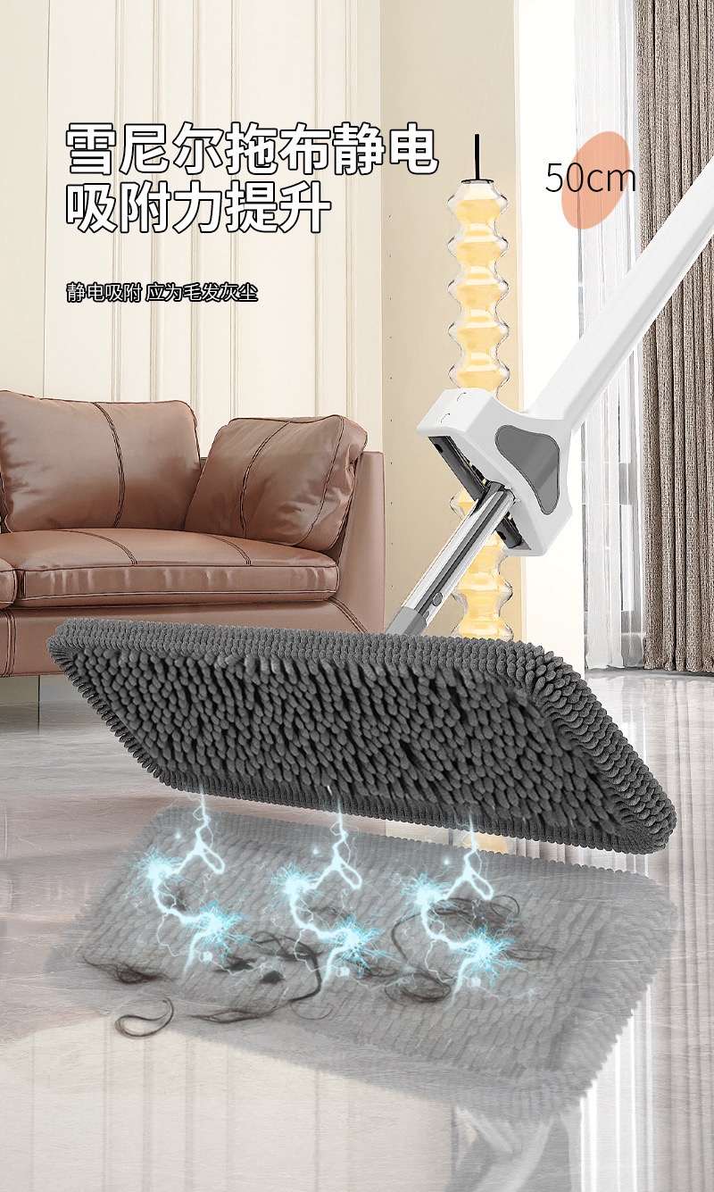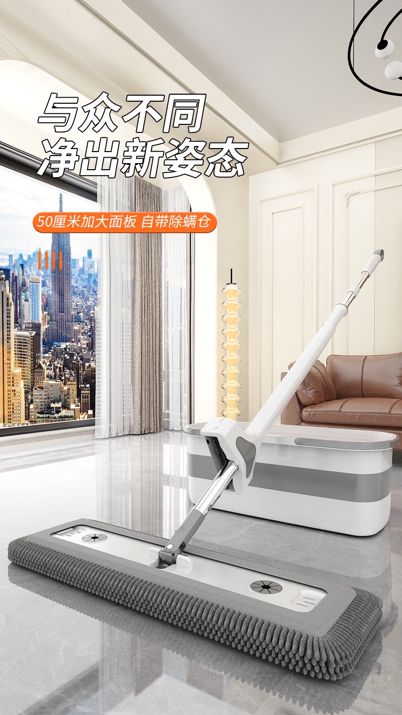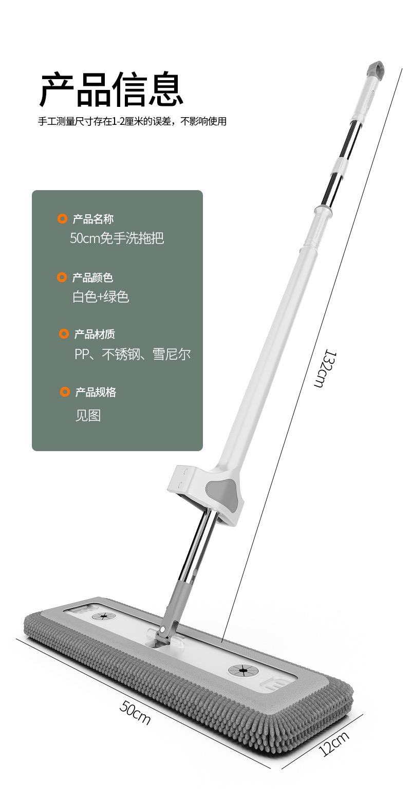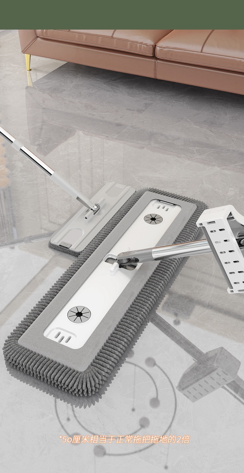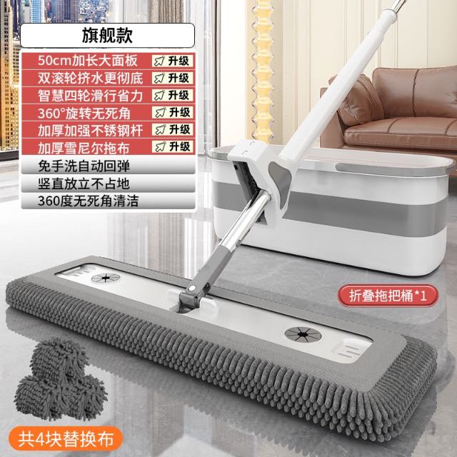 雪尼尔免手洗平板拖把【50CM面板+加强杆】共4块雪尼尔布+涮洗桶