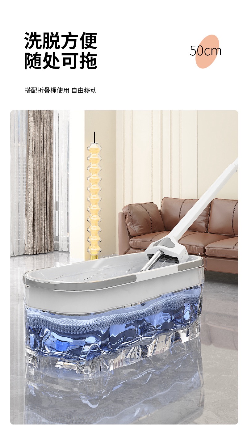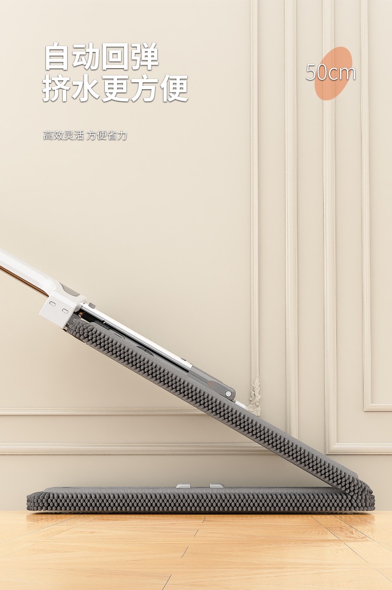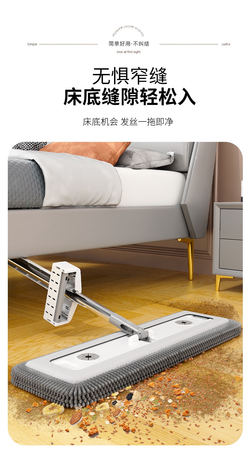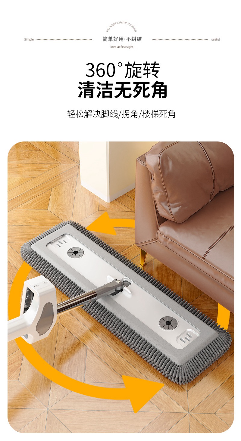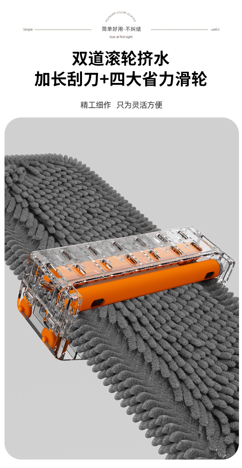 雪尼尔免手洗平板拖把【50CM面板+加强杆】共4块雪尼尔布+涮洗桶