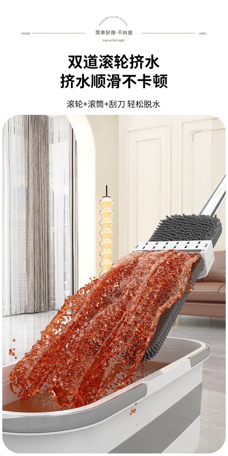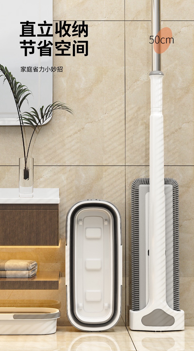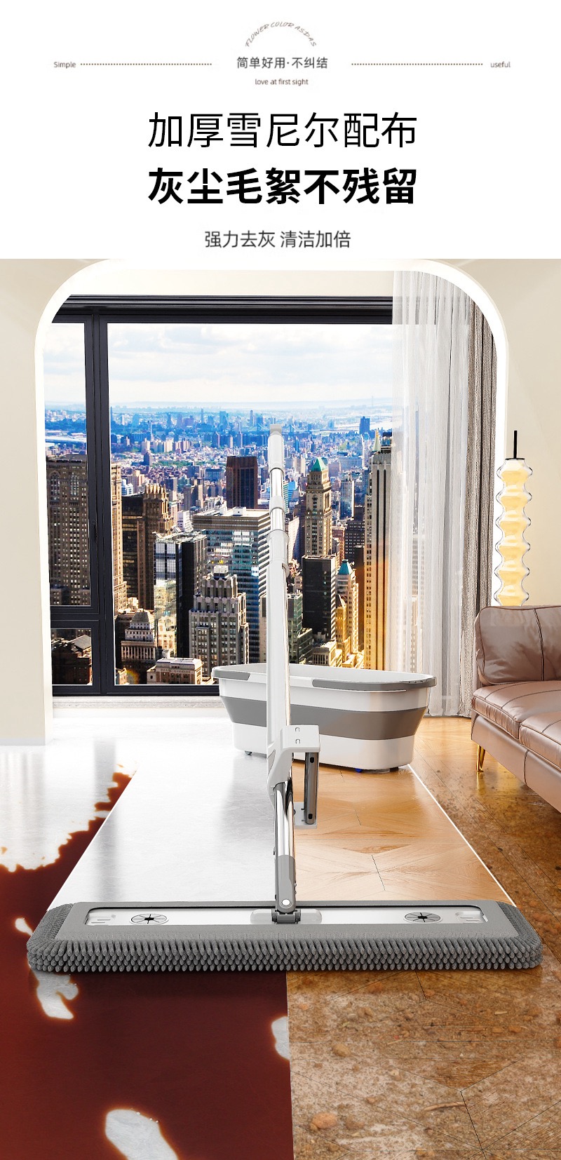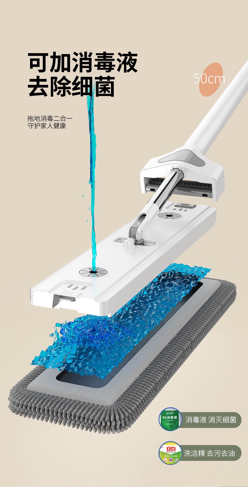 雪尼尔免手洗平板拖把【50CM面板+加强杆】共4块雪尼尔布+涮洗桶