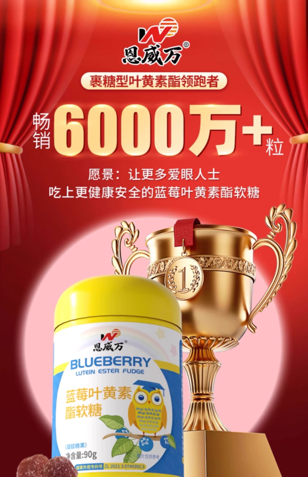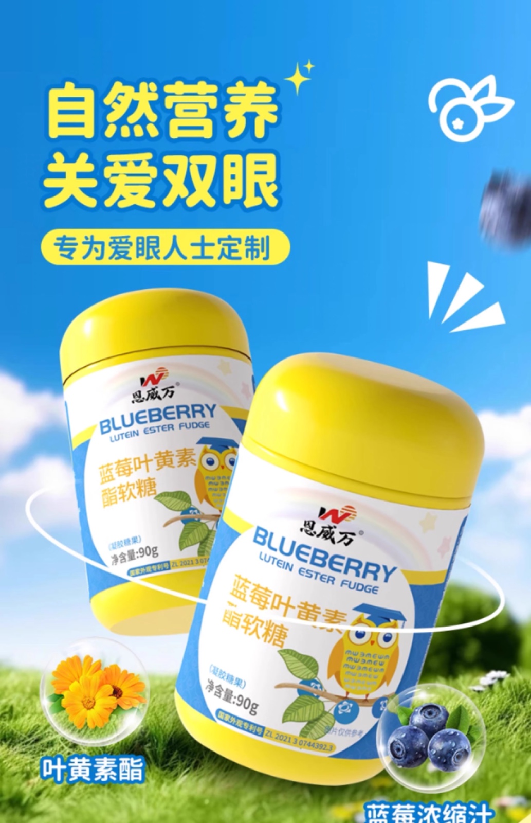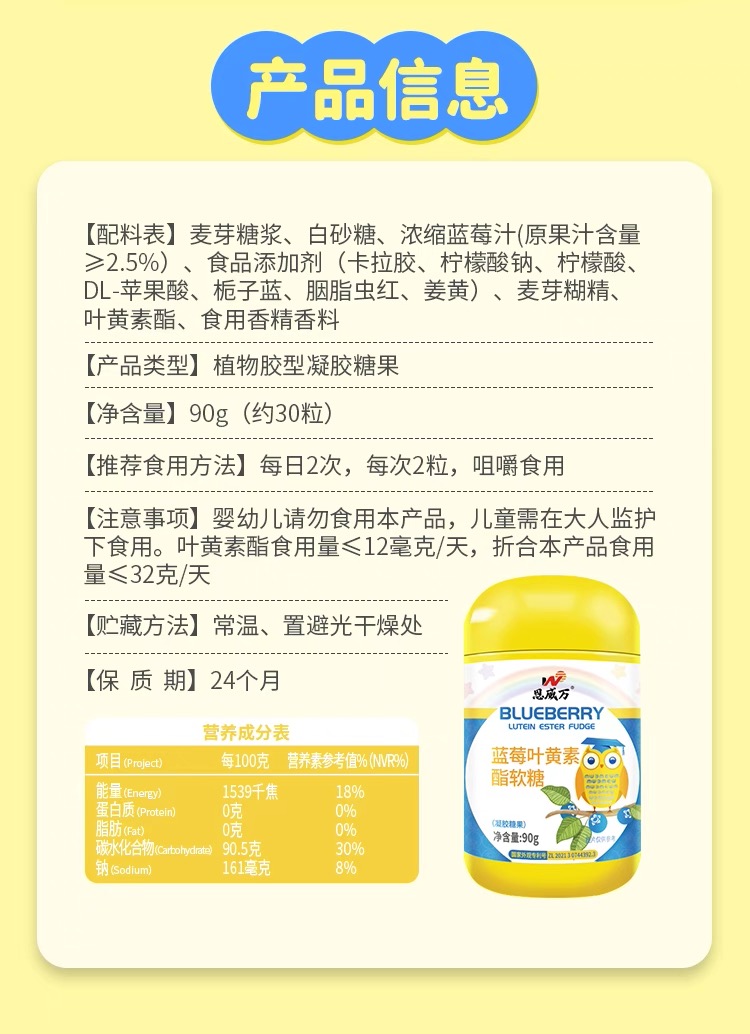 恩威万®蓝莓叶黄素酯软糖【90克】3瓶
