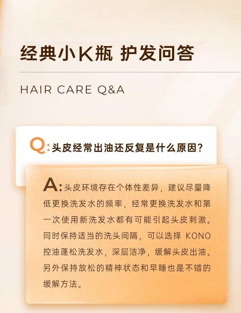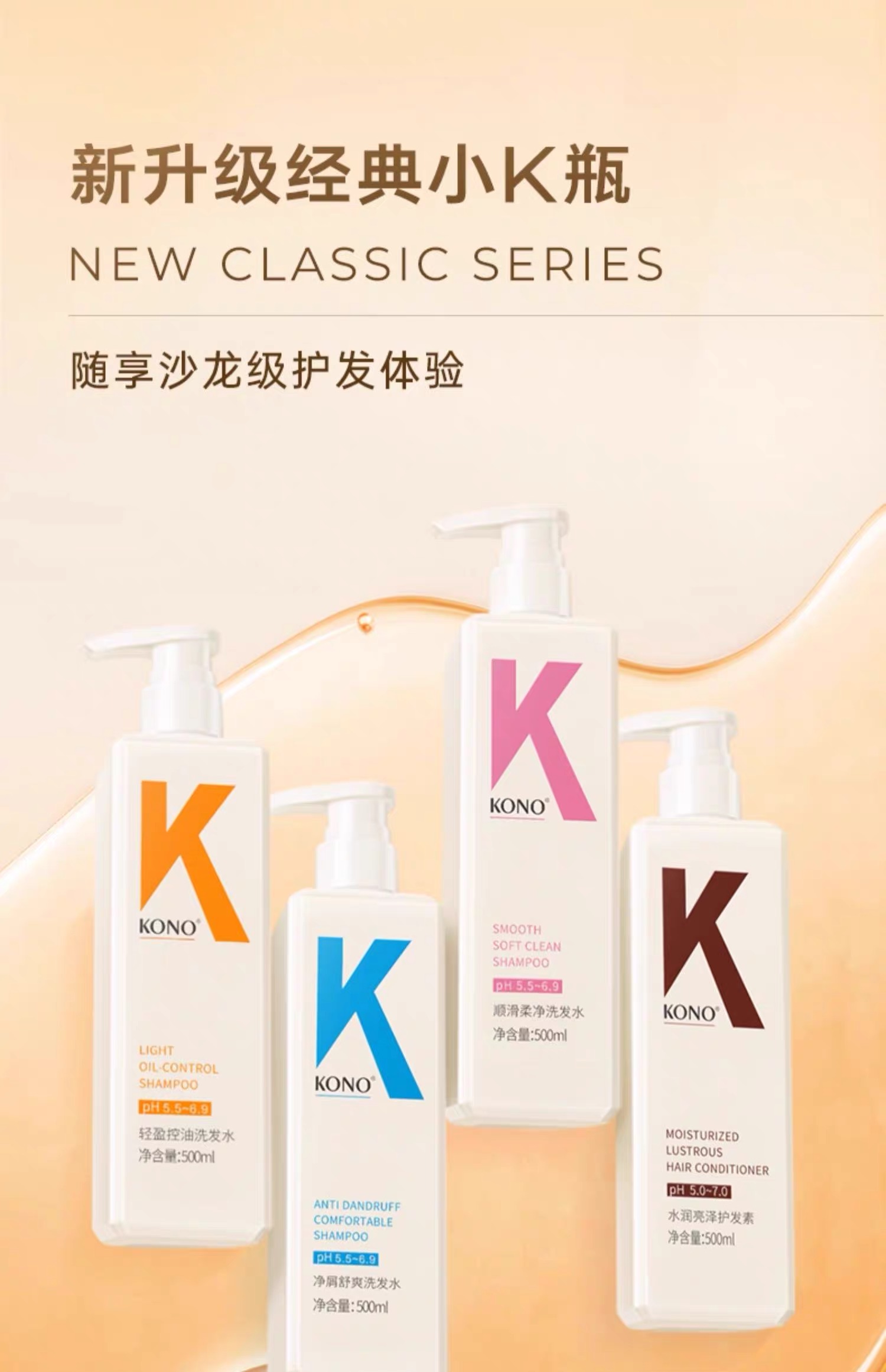 KONO经典轻盈控油洗发水(橙瓶)500ml+水润亮泽护发素(棕瓶)500ml