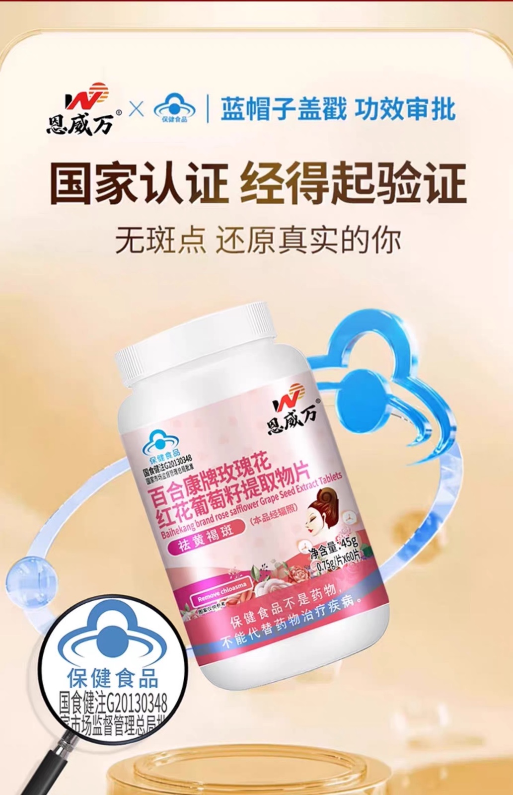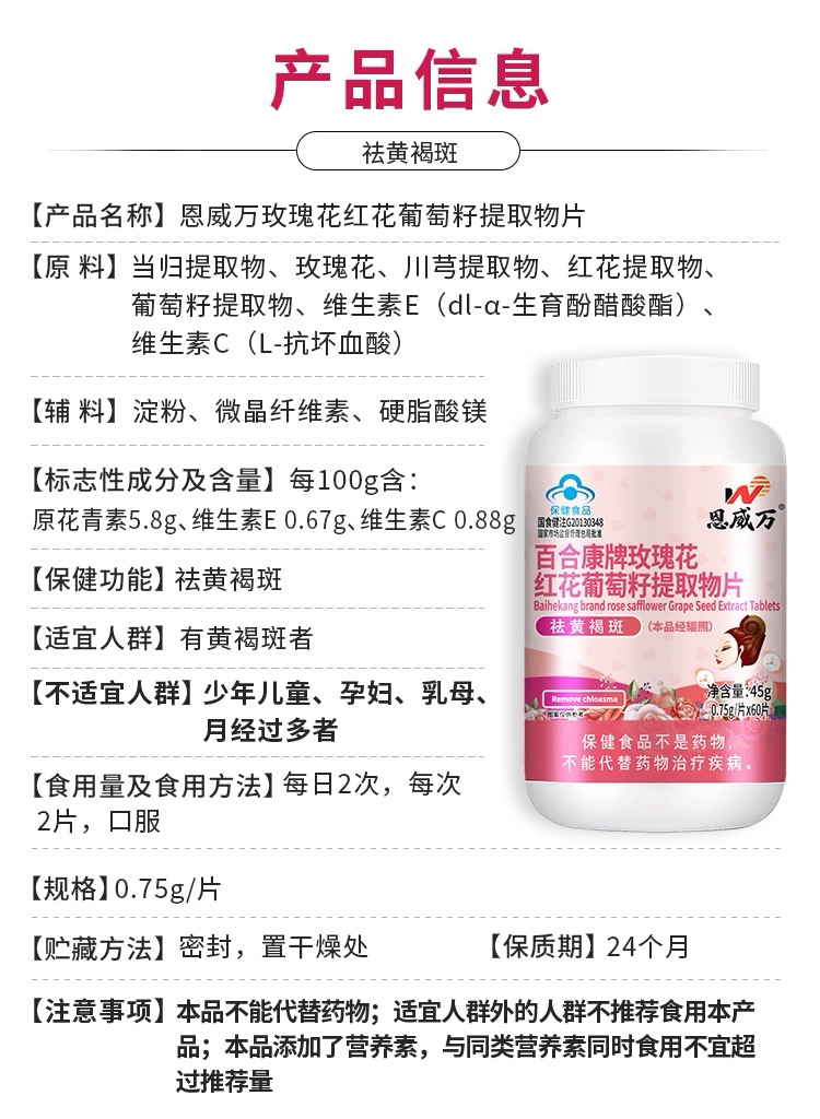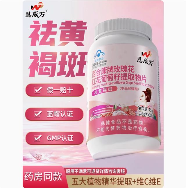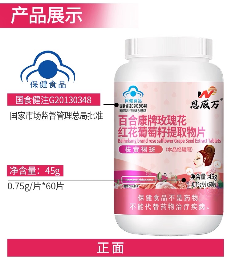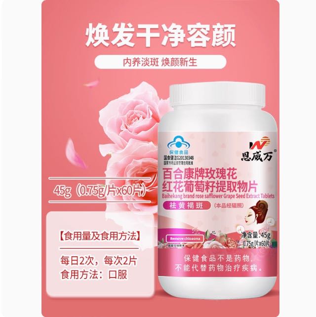 恩威万®百合康牌玫瑰花红花葡萄籽提取物片【60片】3瓶