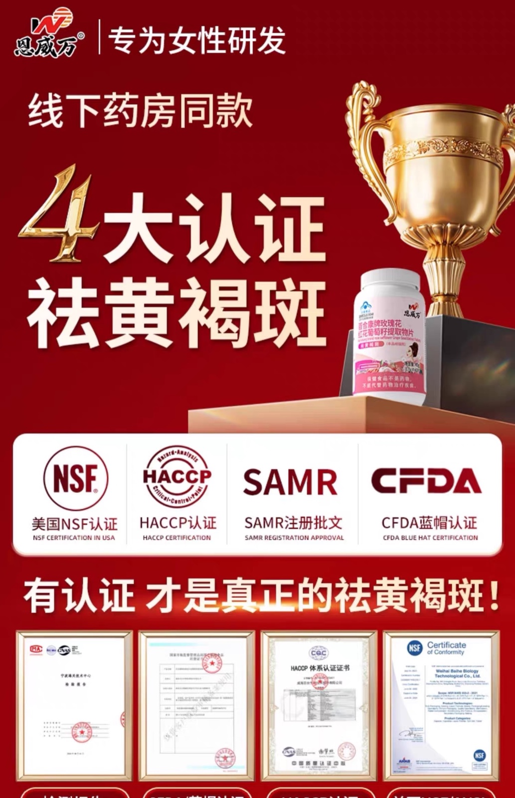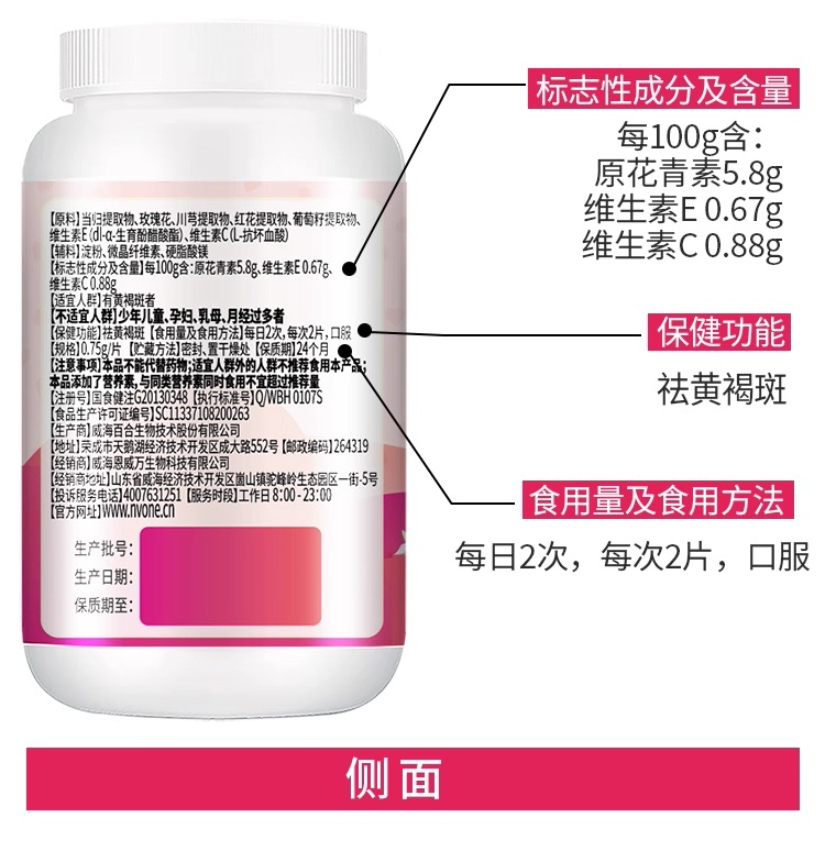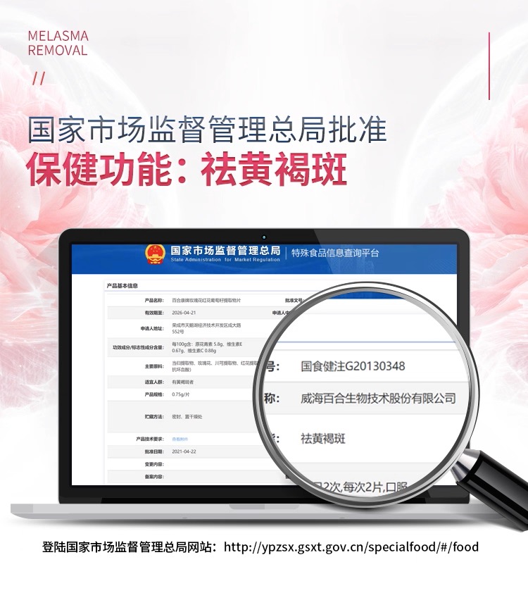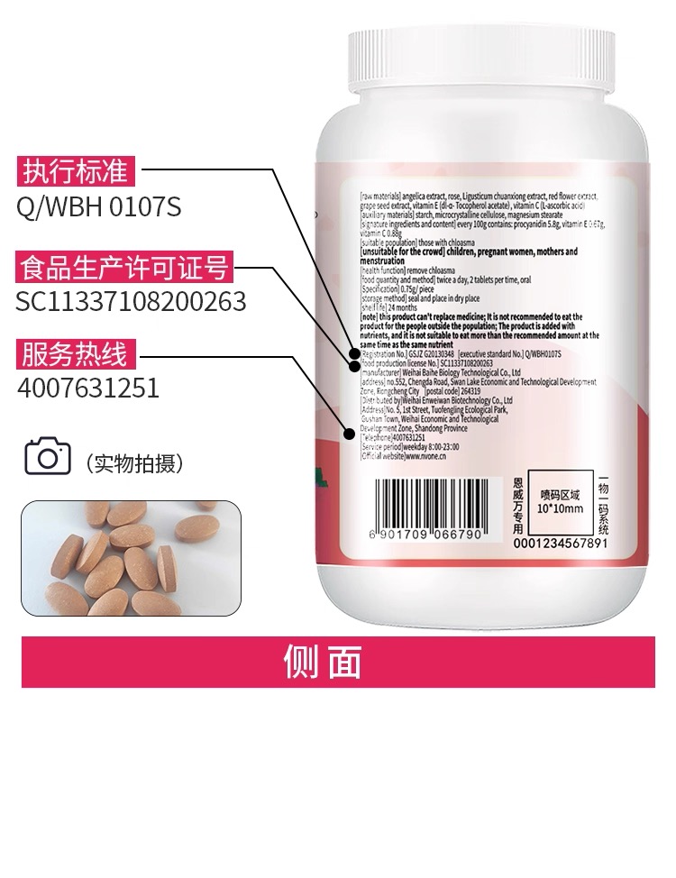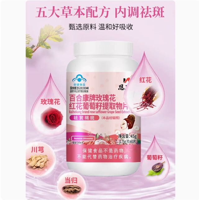 恩威万®百合康牌玫瑰花红花葡萄籽提取物片【60片】3瓶