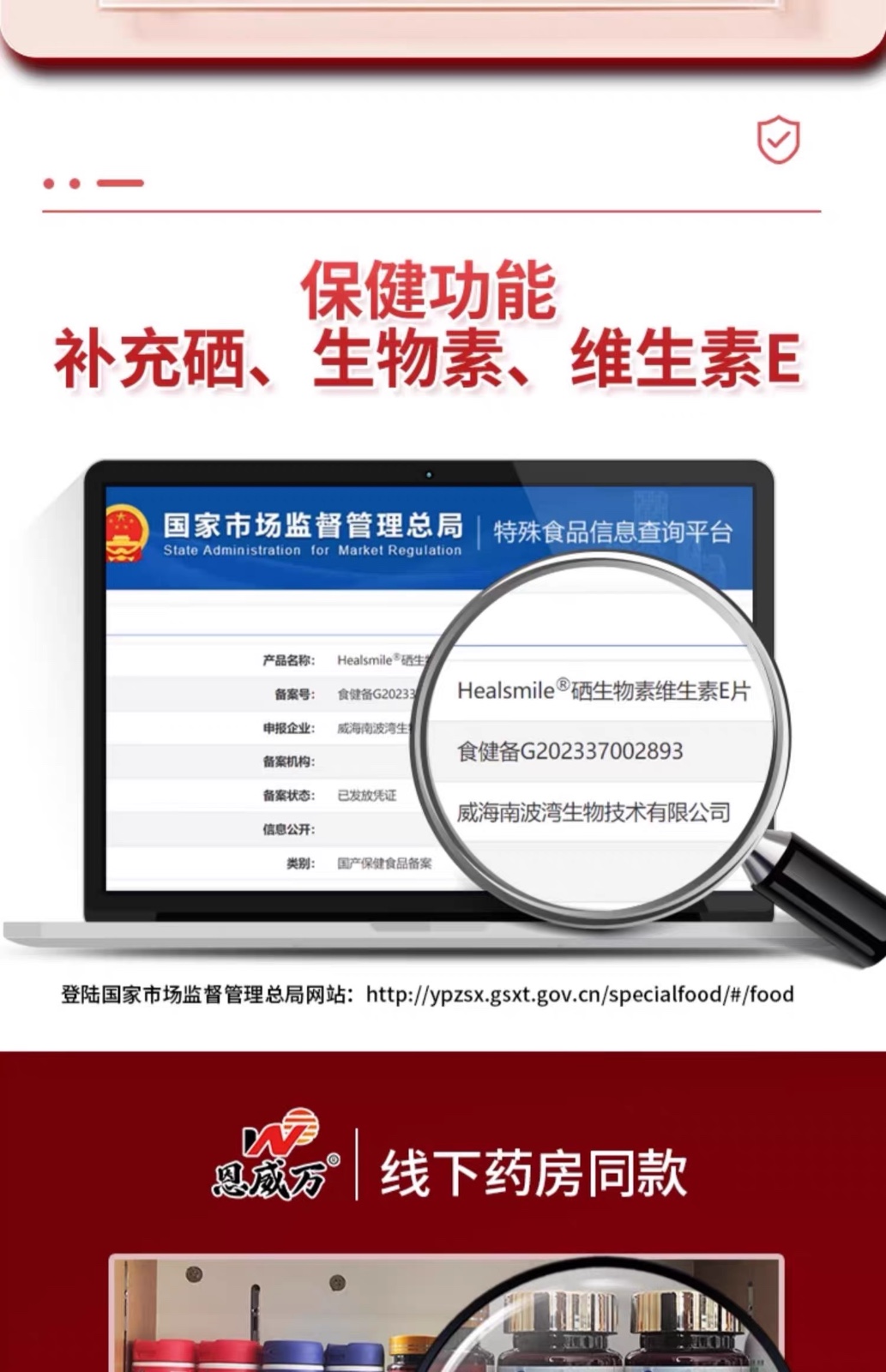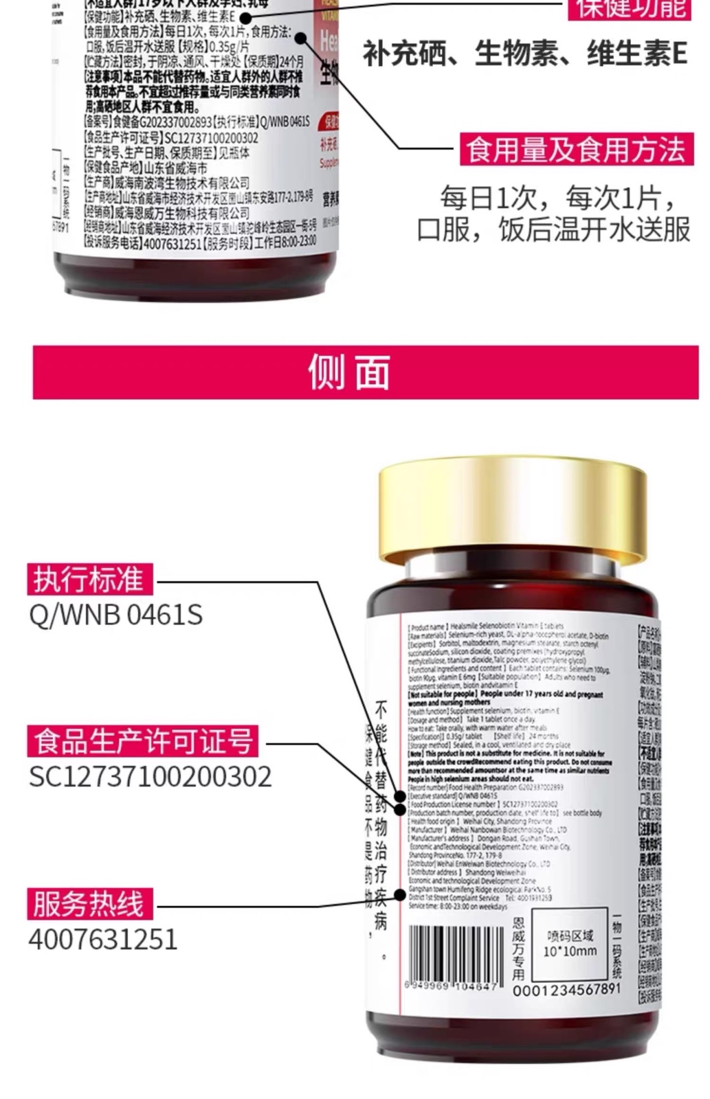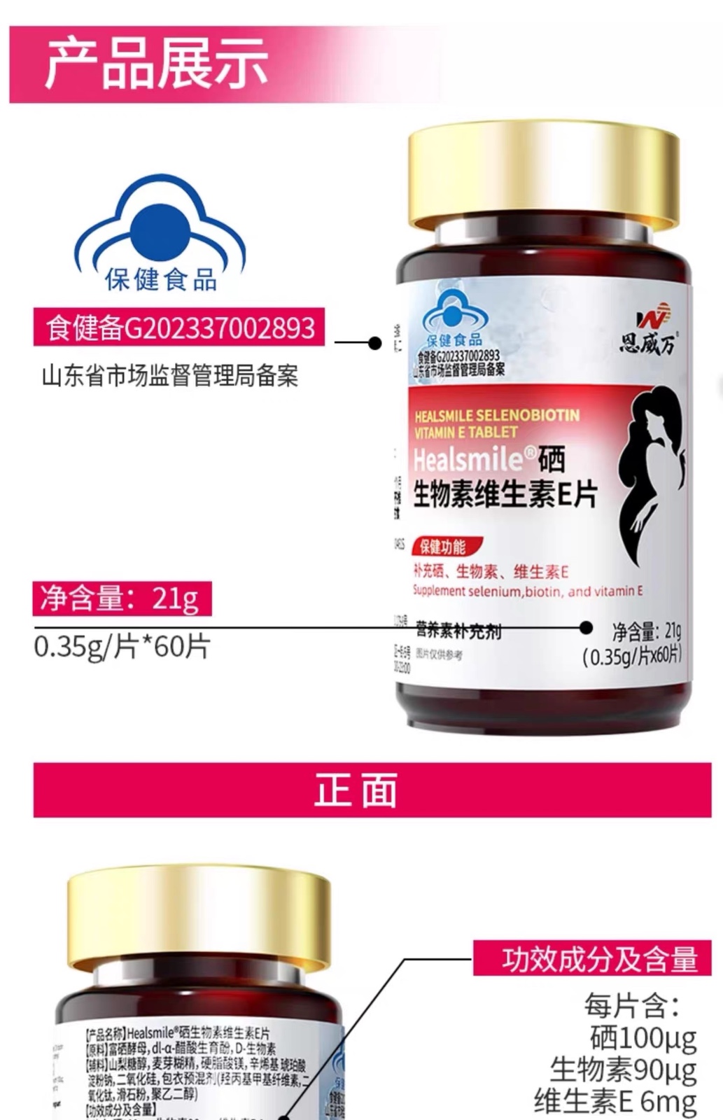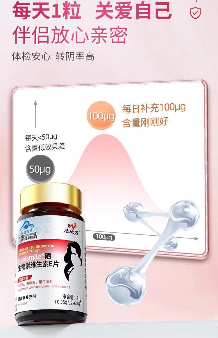 恩威万®Healsmile硒生物素维生素E片【60片】3瓶