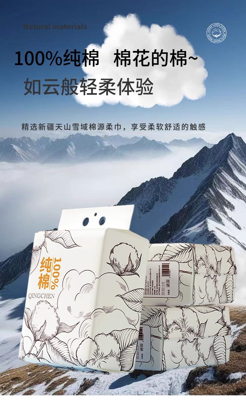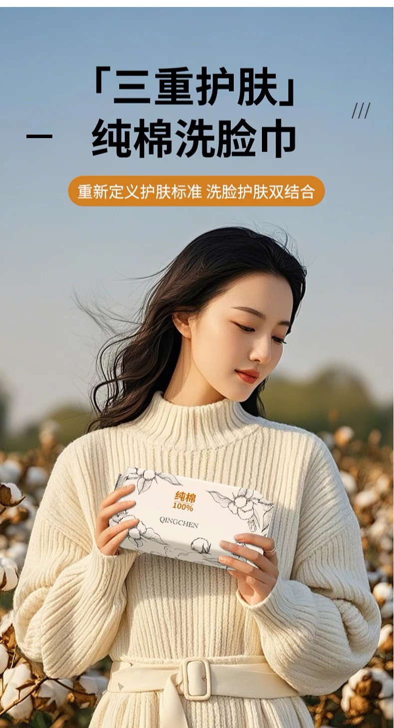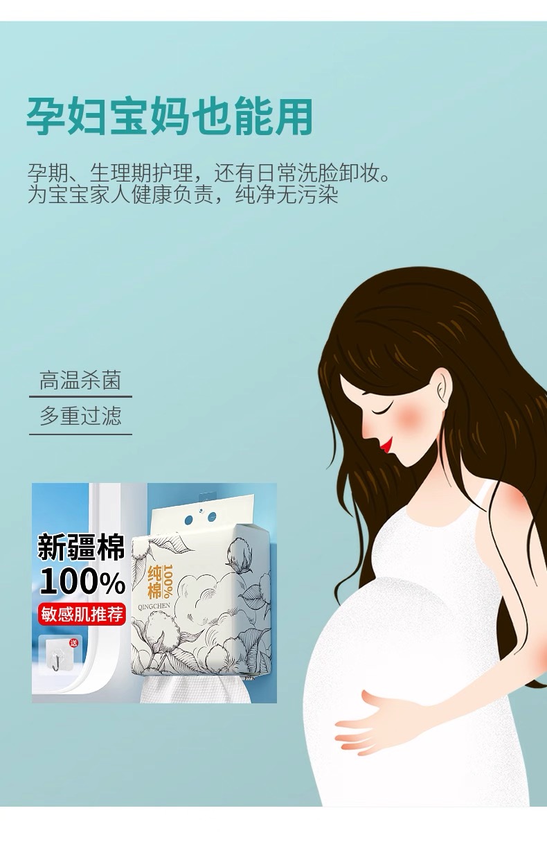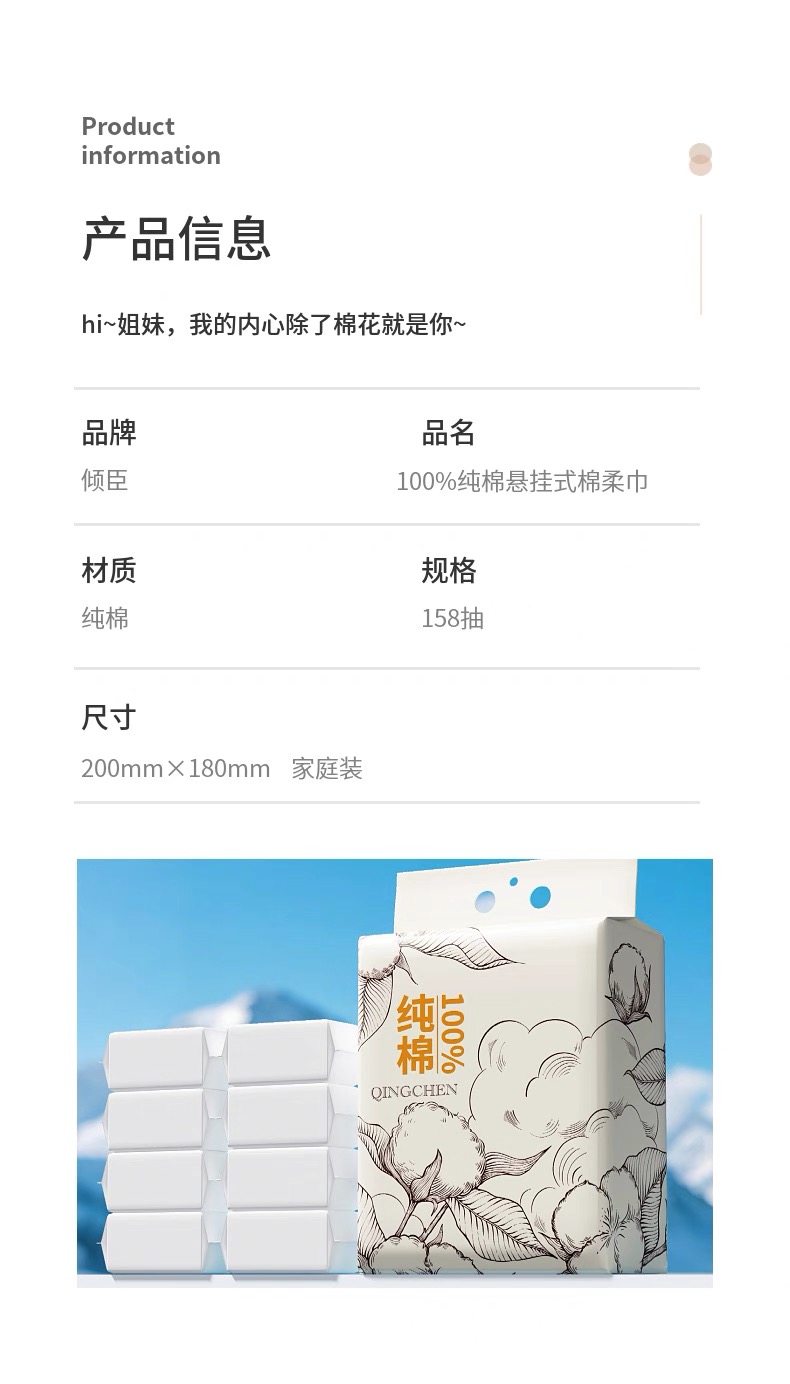 倾臣100%新疆棉一次性洗脸巾悬挂式(20*18cm)158抽*2提