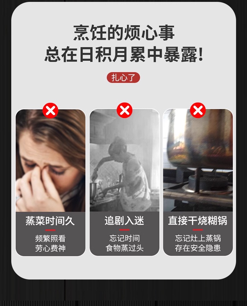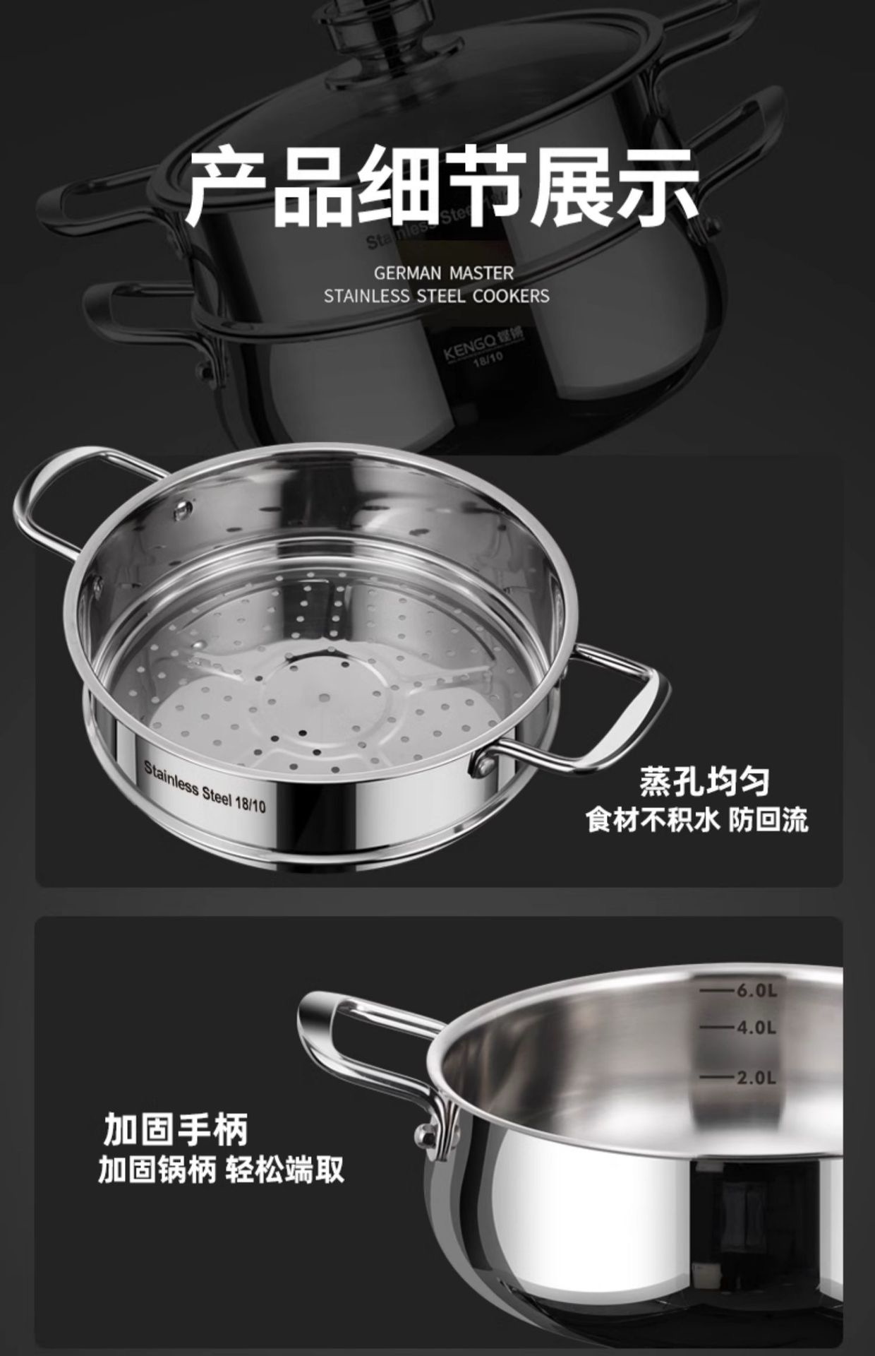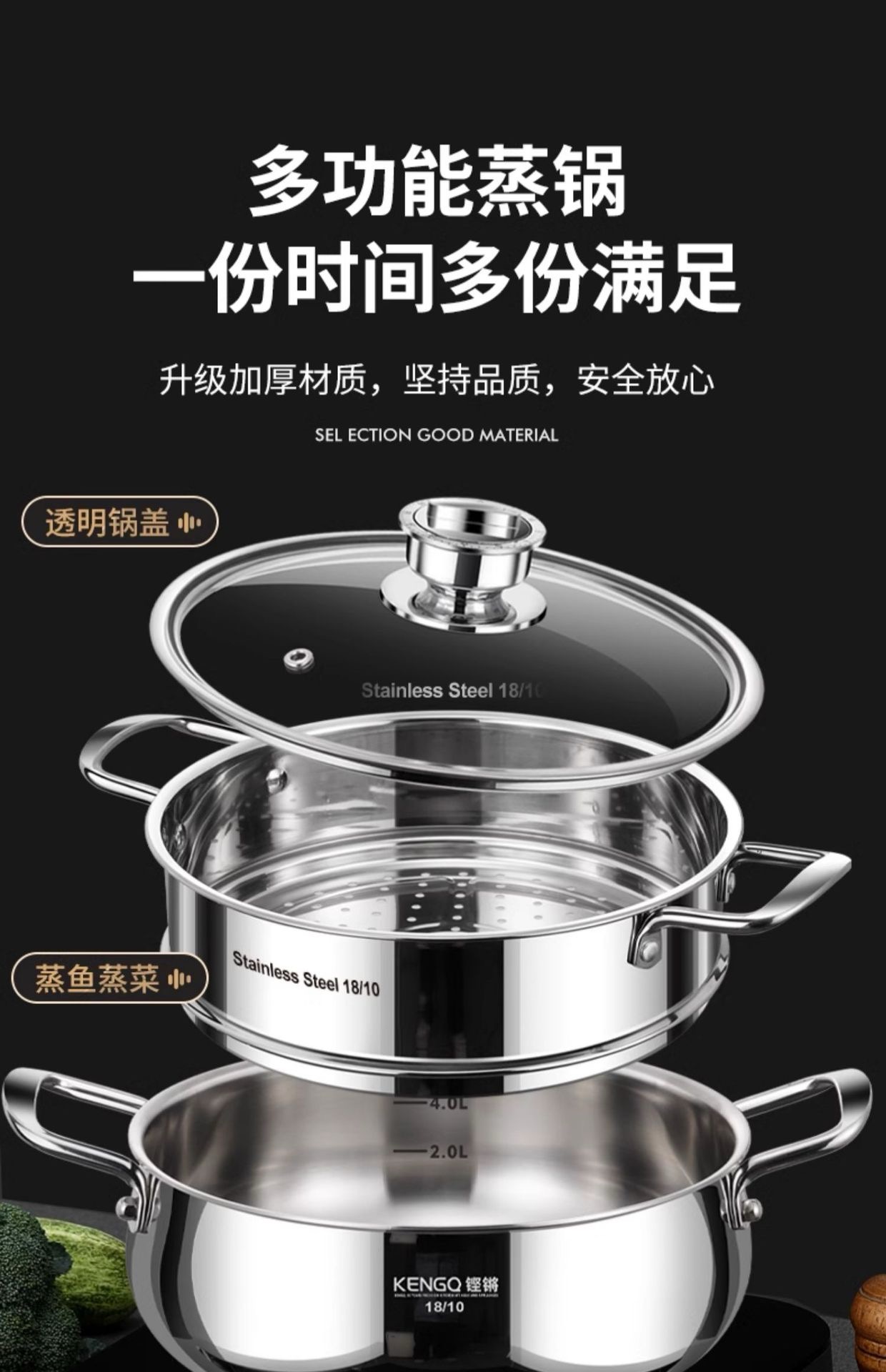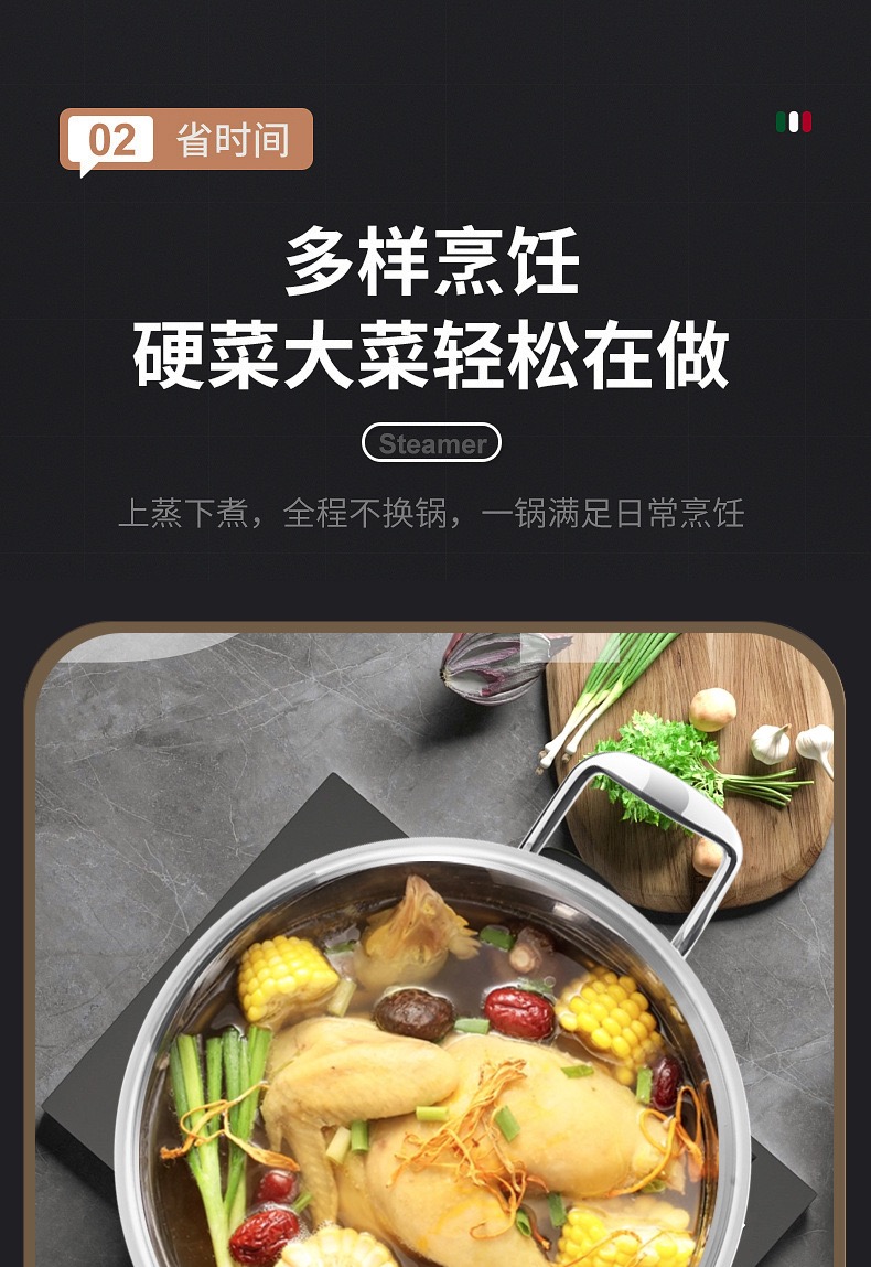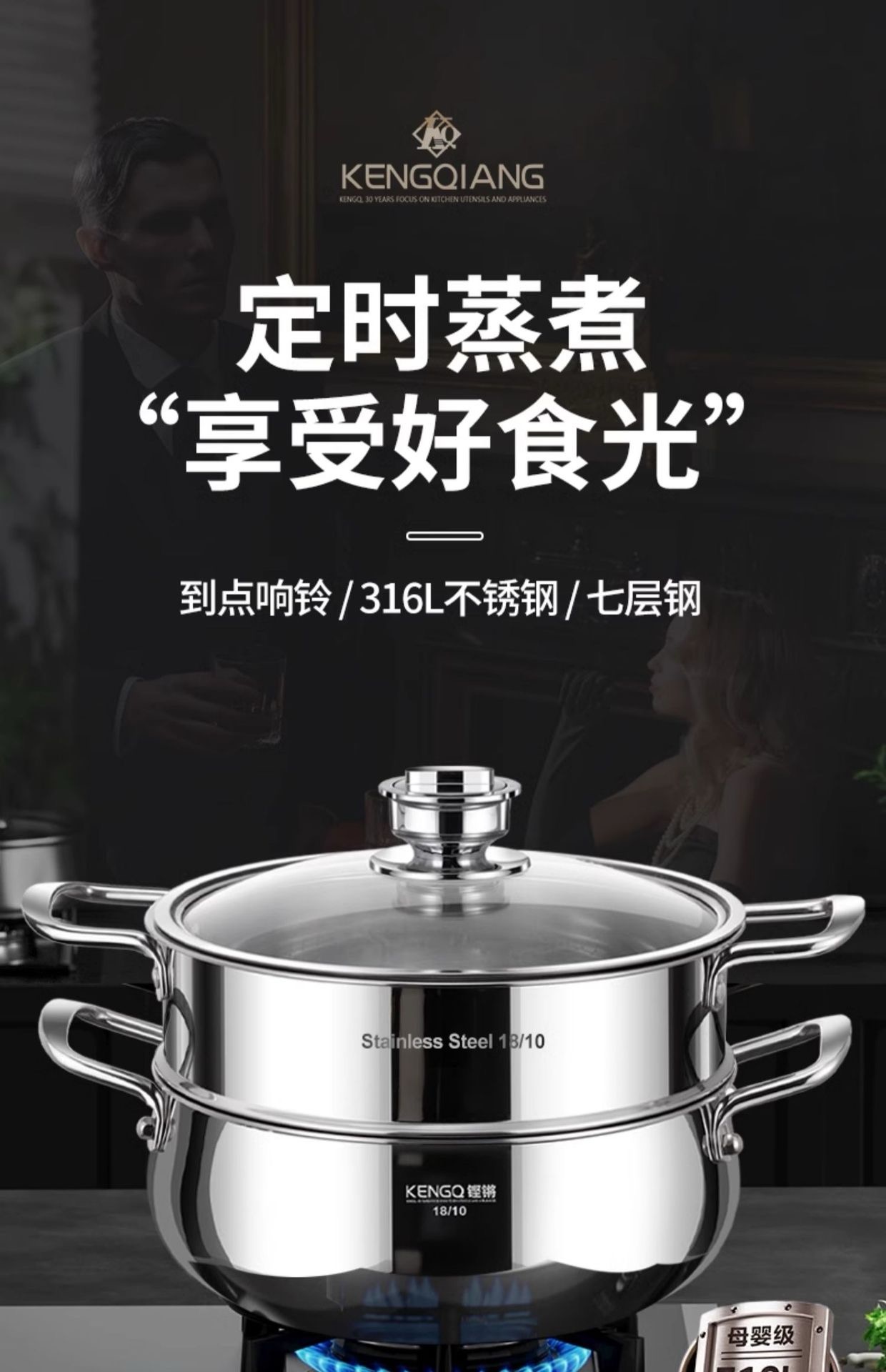 铿锵德国316L不锈钢双层蒸锅机械定时